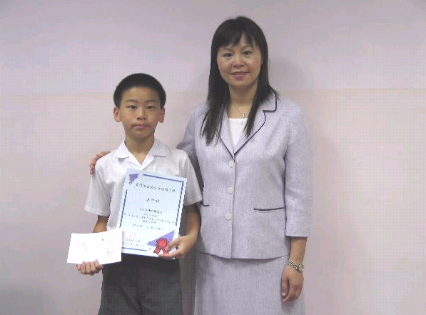 得獎同學(6E 譚皓文) 與 梁美玲校長 合照 |