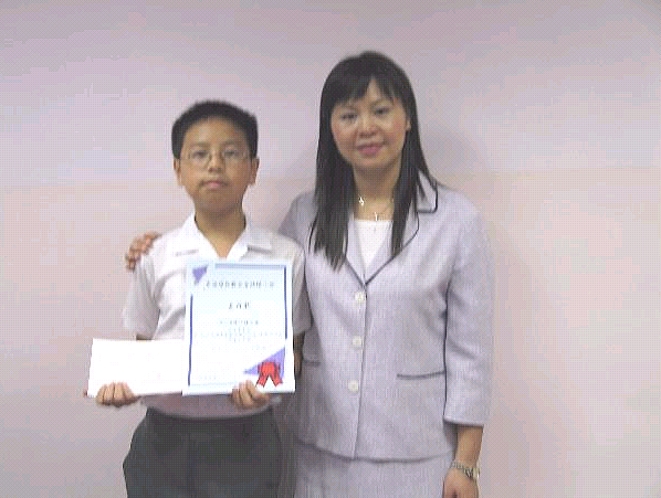 得獎同學(6E 鍾文俊) 與 梁美玲校長 合照 |